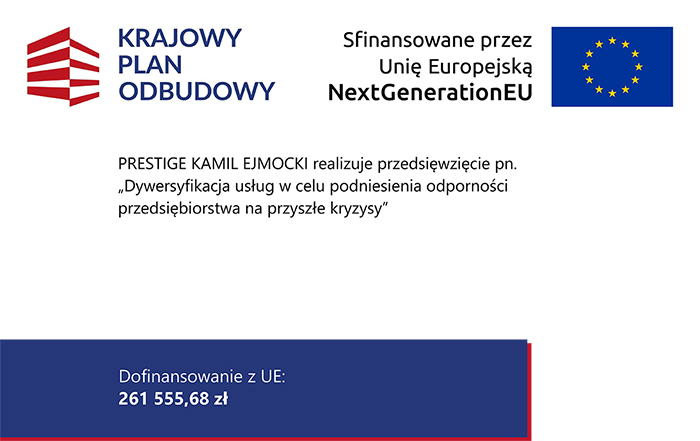 PRESTIGE KAMIL EJMOCKI realizuje przedsięwzięcie pn. „Dywersyfikacja usług w celu podniesienia odporności przedsiębiorstwa na przyszłe kryzysy”